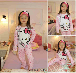 Piama anak hello kitty murah grosir ecer polkadot pink